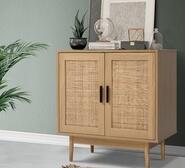 Upgrade your storage solutions with the Vedo 2 Door Oak Buffet. This smart sideboard features real rattan doors and sturdy eucalyptus wood legs, delivering a touch of chic appeal while ensuring reliable performance for your home.