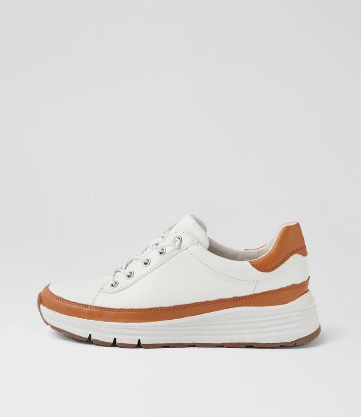Vellie New Tan White Leather Sneakers