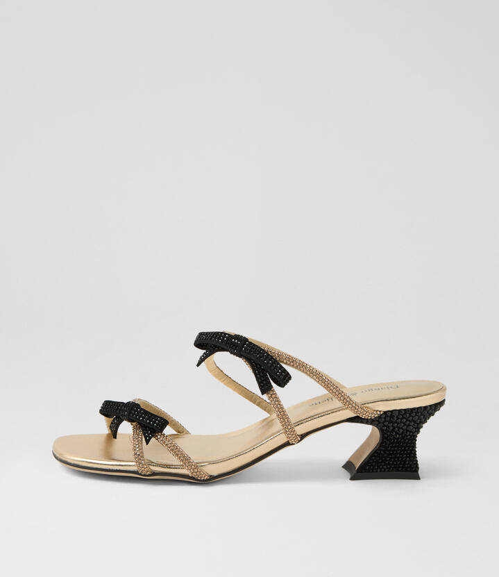 Vikia Gold Black Jewels Leather Sandals