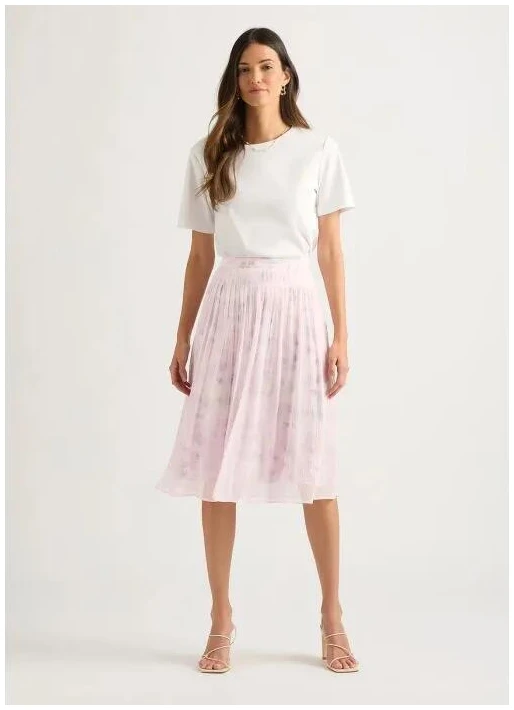 Delivering lightweight layering that’s simply perfect for summer, this midi skirt places sheer crinkle fabric over a floral print lining, revealing gorgeously summery shades based in pale shell pink.
