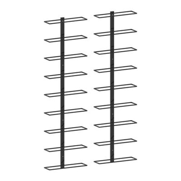 WALL MOUNTED WINE RACKS FOR 18 BOTTLES 2 PCS BLACK IRON This wall-mounted wine rack with simple yet stylish design adds a touch of modern class to your living space. Delivery includes 2 wine racks which can hold up to 18 bottles of wine.