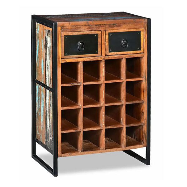 WINE RACK FOR 16 BOTTLES SOLID RECLAIMED WOOD This industrial-style wine rack is perfect for wine aficionados. This striking wine rack will add a touch of rugged charm to your kitchen, dining room or living room.