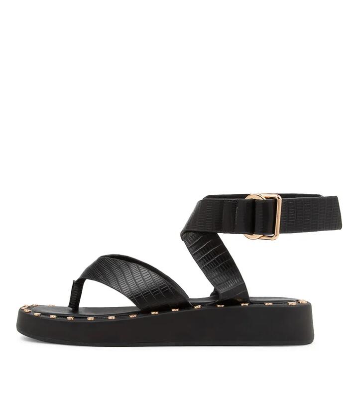 Yolo Black Lizard Leather Sandals